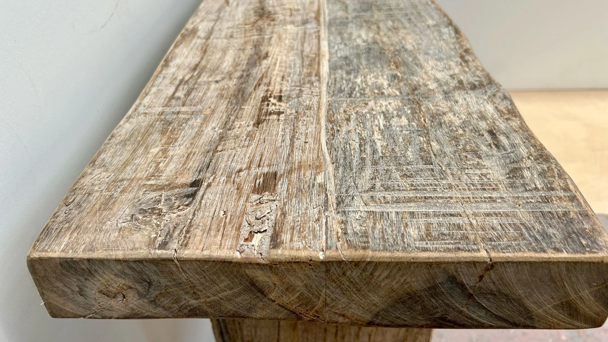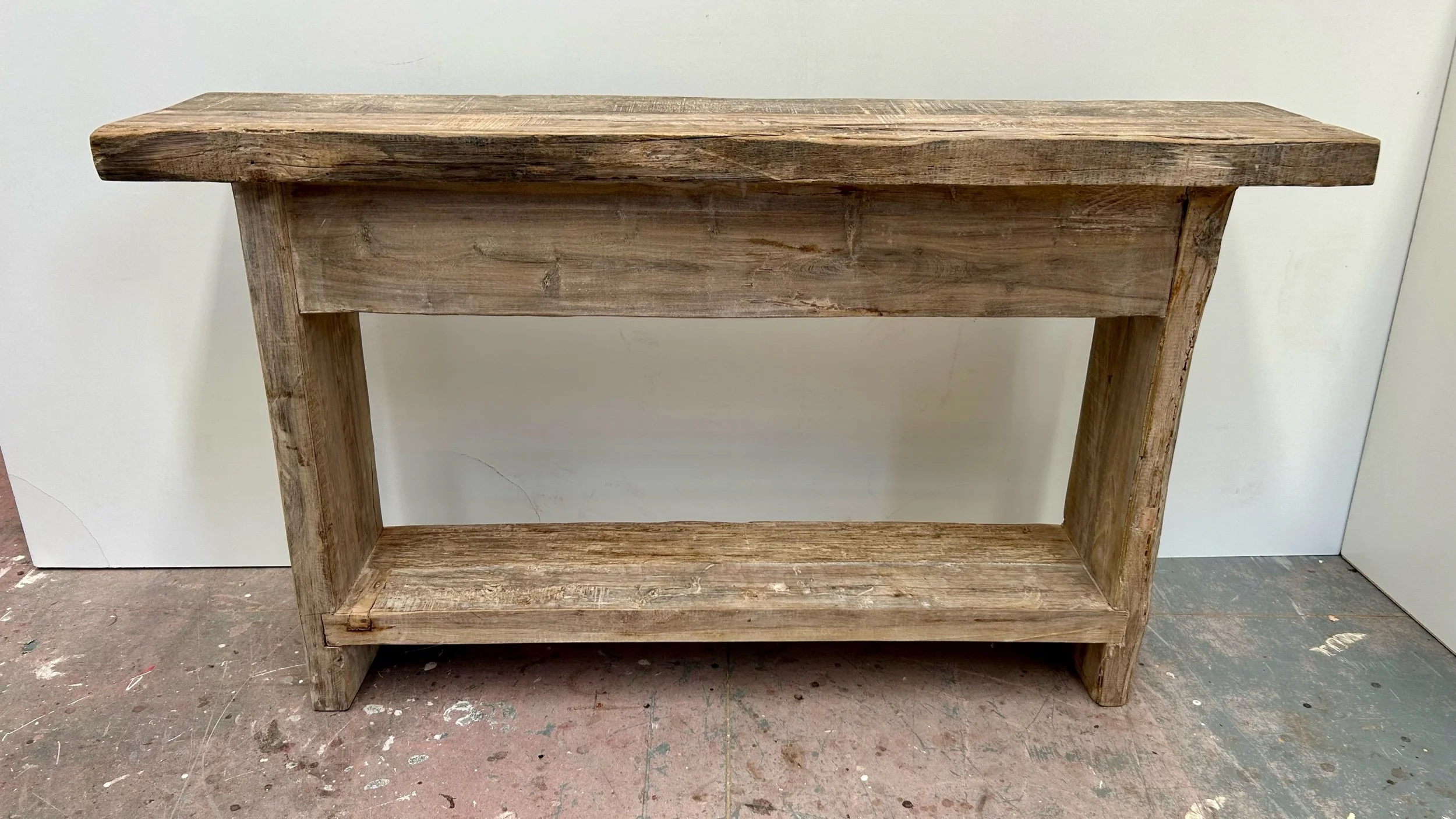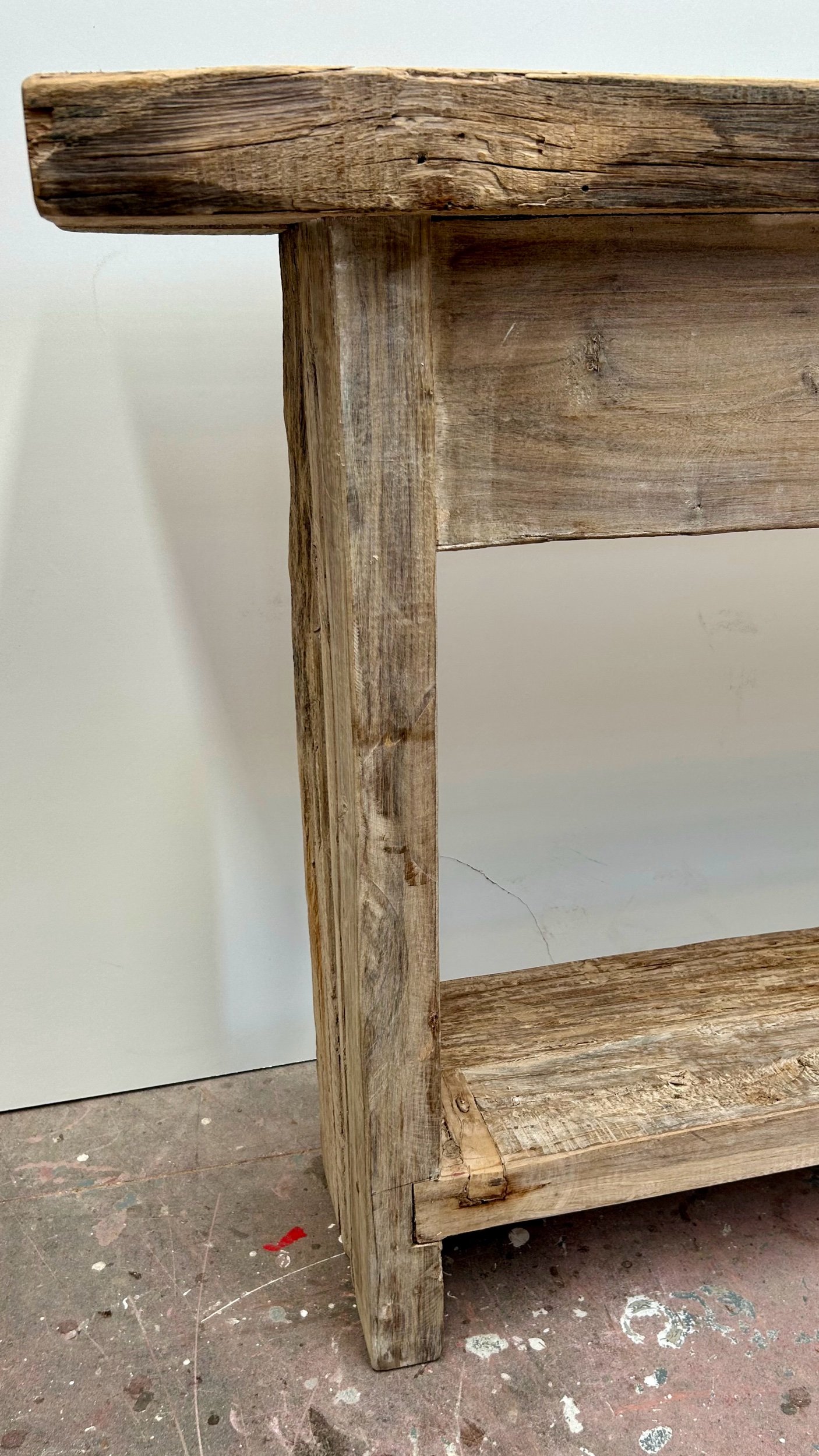 Handcrafted with a beautifully aged, timeworn finish, this rustic console table showcases the natural character of timber, with every grain and mark adding to its unique charm.